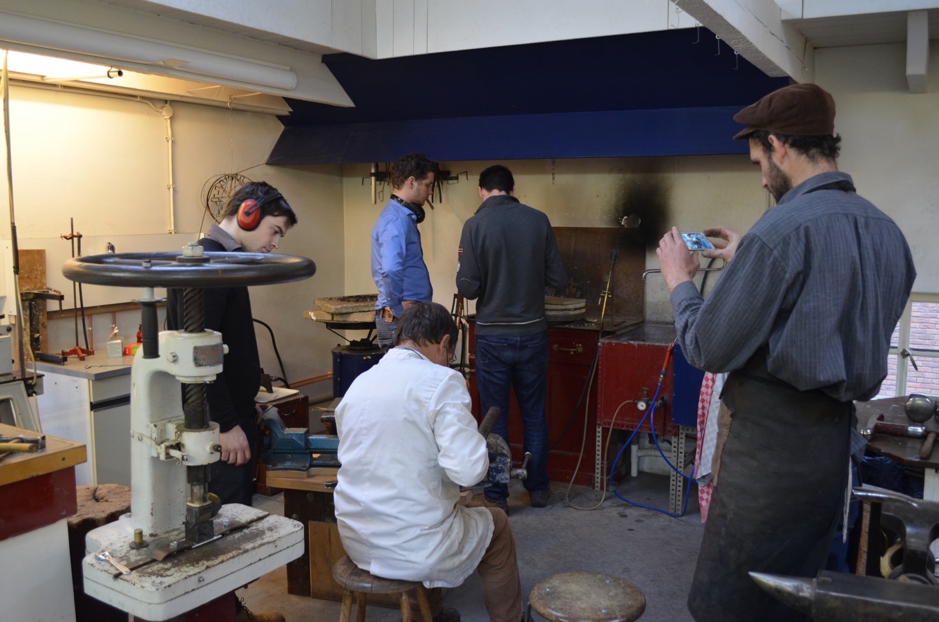 The three masterclasses so far - all sponsored by the foundation STRAND LINKS - took place in the workshop of Jan van Nouhuys in Schoonhoven. The idea of having it in the Vakschool was met with great enthousiasm by the head of the College and the teachers for silversmithing.