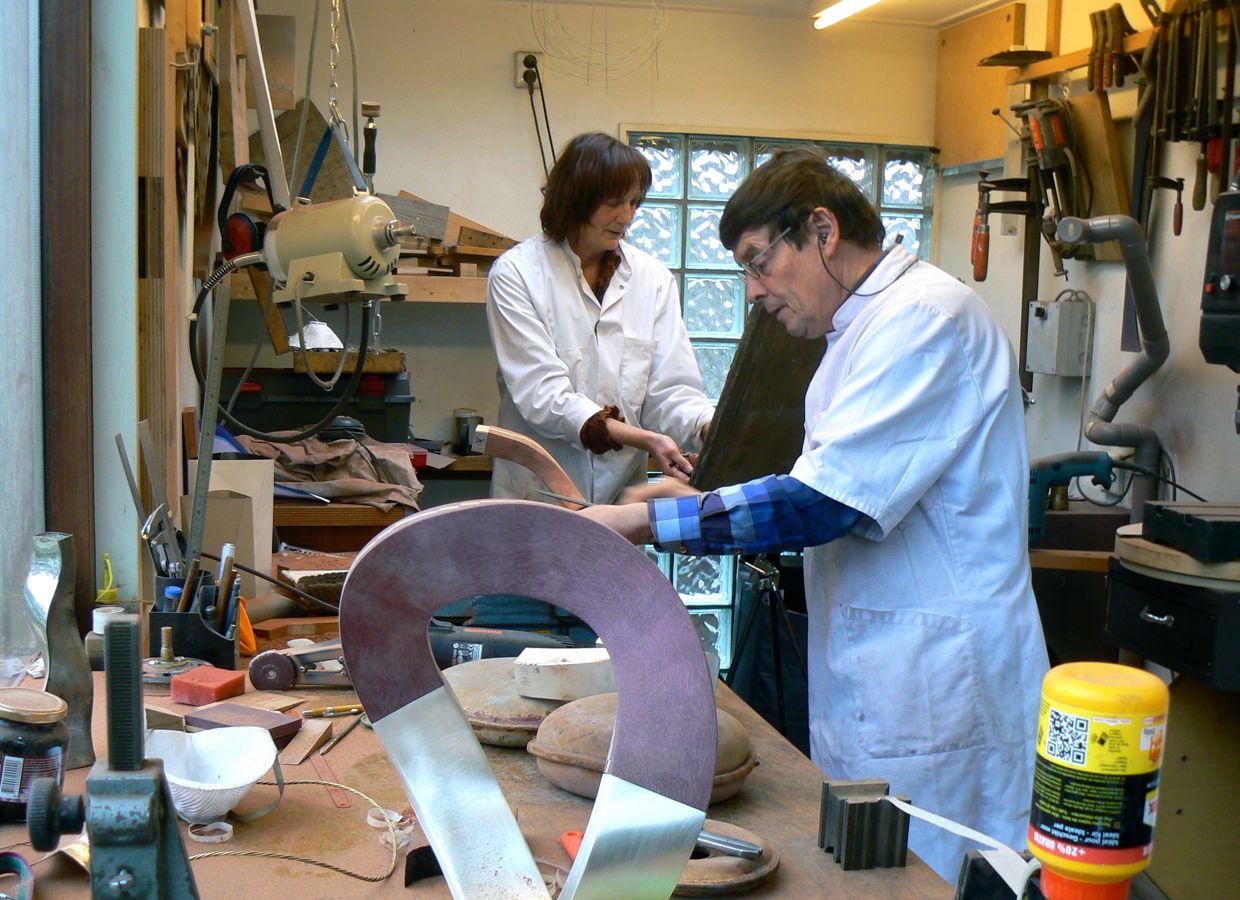 In one way or another they have heard about this opportunity to develop and broaden their skills. Each one arrives with her/his own design, which is talked over by Van Nouhuys with the group as a whole - in itself a learning process, according to Van Nouhuys. Then they work for ten days from early morning to evening making full use of the workshop's extensive equipment and facilities.