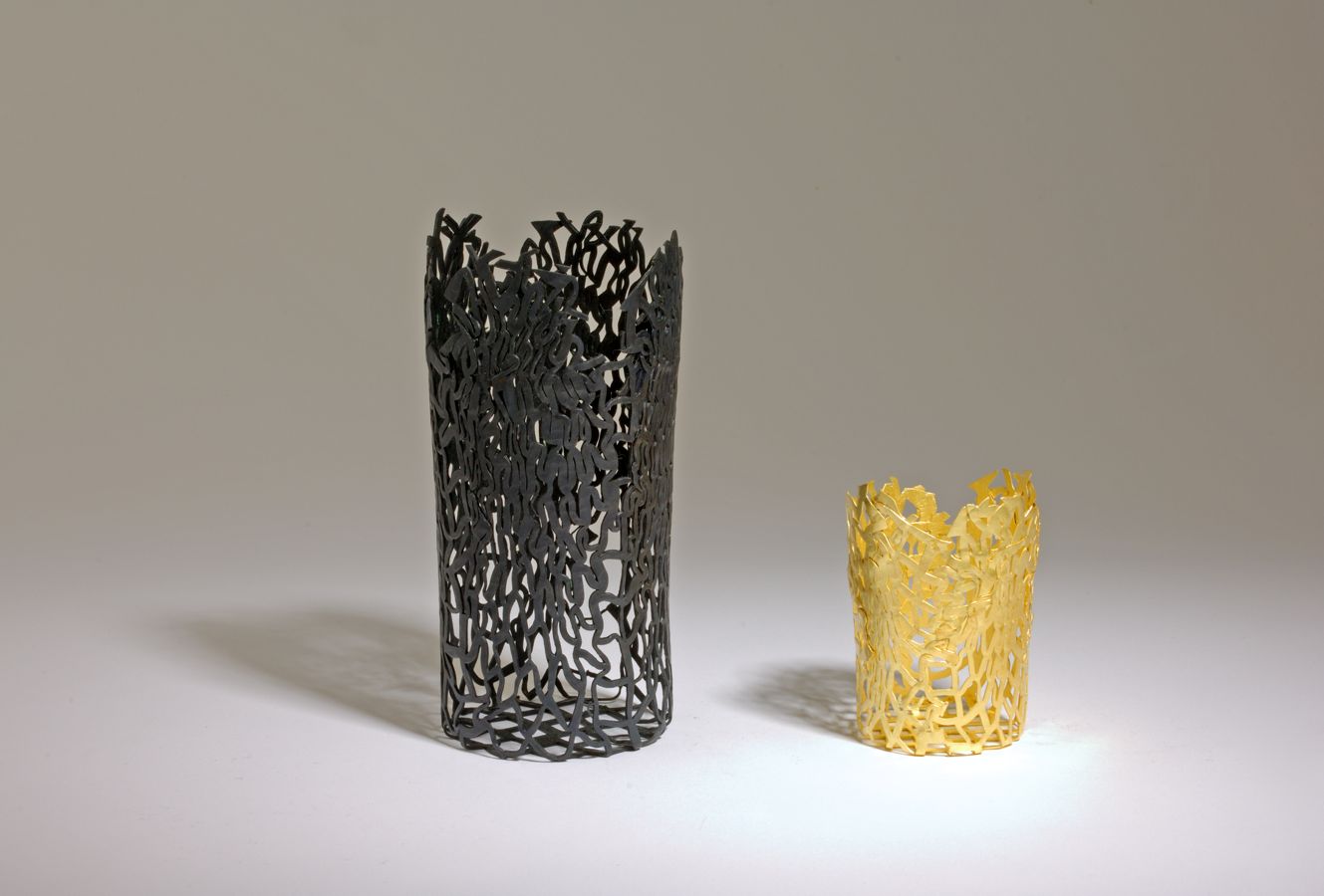 At this solo exhibition of Helena Schepens, a young Antwerp-based silversmith, Studio 925 shows vessels, mostly made of silver, and steel wall panels. Helena's playing with shadows has produced brilliant work with an almost poetic quality. In some of her vessels she makes a refined pattern with holes which creates an effect of light and shadow on the surface the vessel sits on. Her works show a beautiful mix of concept and craftsmanship.