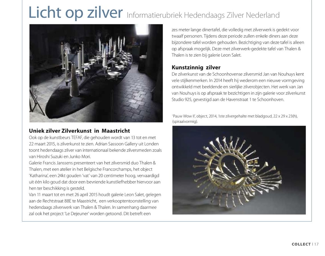 In the February issue of the arts magazine COLLECT attention was given to Jan van Nouhuys's newest work.