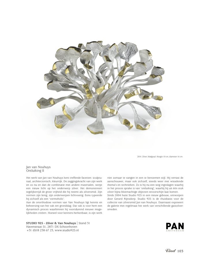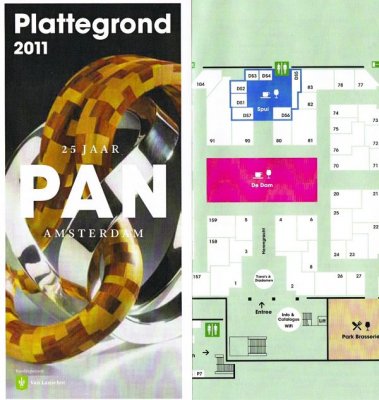 Studio 925 had a remarkable PAN this year. First of all, the celebration of Jan van Nouhuys' jubilee of 35 years of silversmithing had obviously struck a cord with the PAN organisation, as they put on the floorplan leaflet cover one of Van Nouhuys' objects, namely the "Platte knoop" (Square knot). As they put it, as a tribute to his achievements during those years and with the hope to be able to enjoy his sparkling creations for years to come!