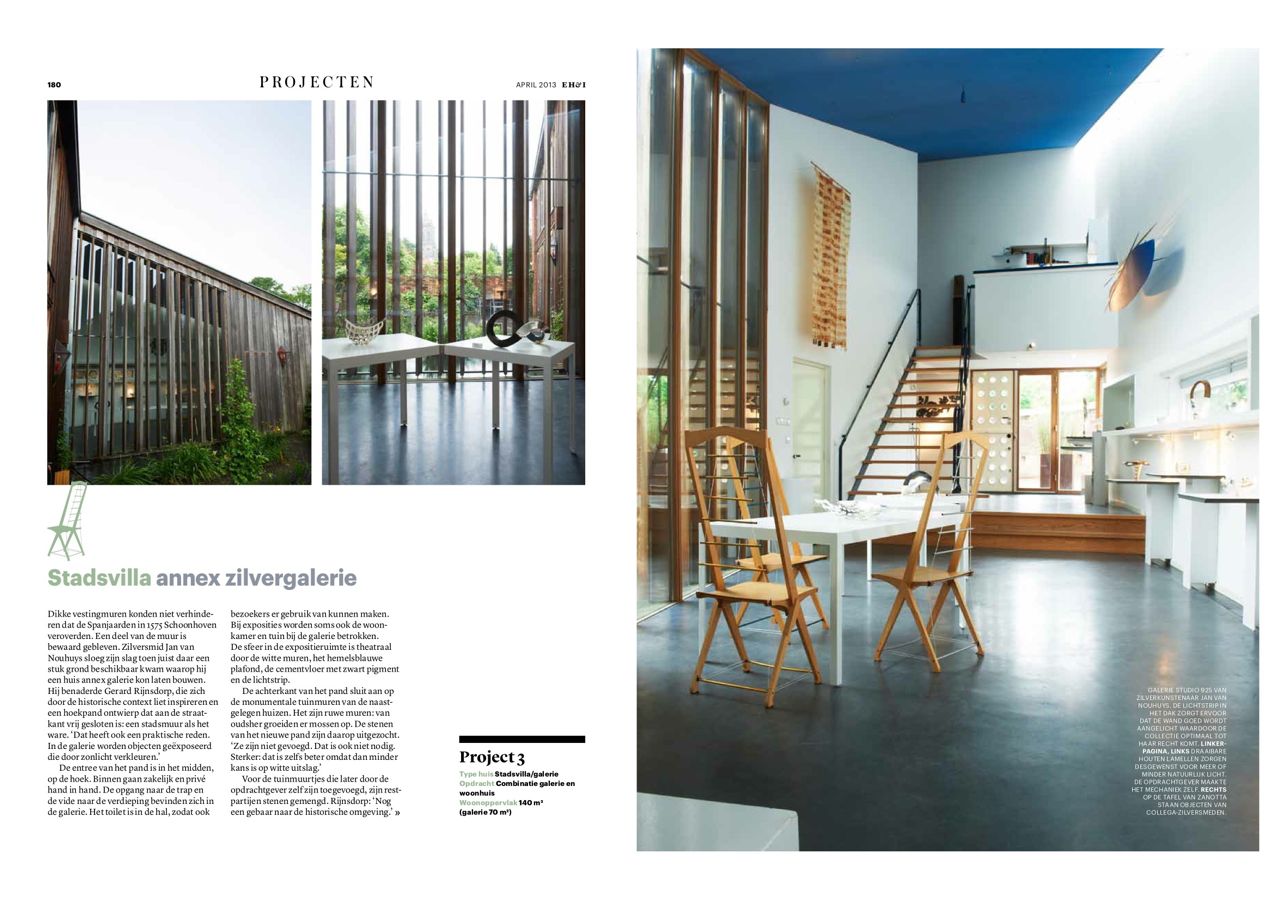 In an article about architect Gerard Rijnsdorp from Reeuwijk, the magazine Eigen Huis & Interieur devotes 14 pages to four of his designs for private houses in its April 2013 edition. Gallery Studio 925 which is part of the home of Jan and Anneke van Nouhuys is one of the projects chosen by the architect himself.