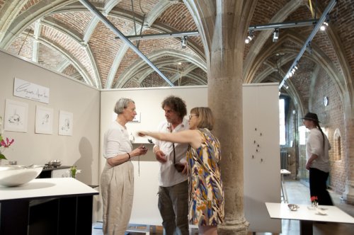 For the first time this year the National Silverday, always on Whitmonday, was extended over the weekend. And for the first time the event was international. Ten silversmiths from Belgium and the UK put up an exhibition in the Turfkelder, a beautiful space with its gothic vault underneath the Town Hall.The Saturday and the Sunday built up, as far as numbers of visitors were concerned, towards the climax on Monday, when around 16.000 people visited Schoonhoven.