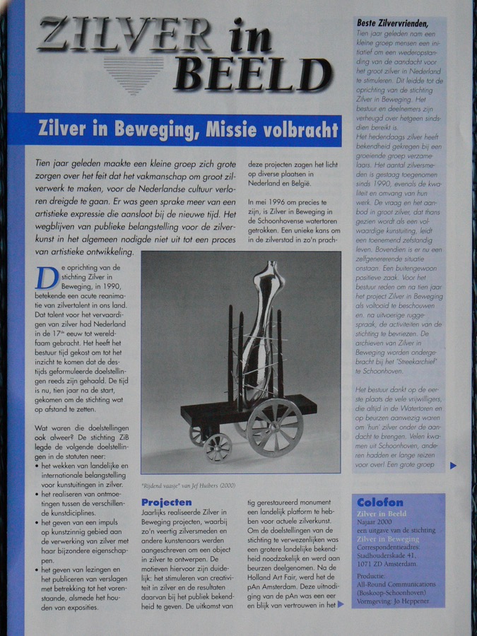 Bir Muste, a Schoonhoven based dealer in gemstones, took the initiative to get together a promotion committee to decorate Schoonhoven's many roundabouts with works of art that convey the message : you are in the silver town.